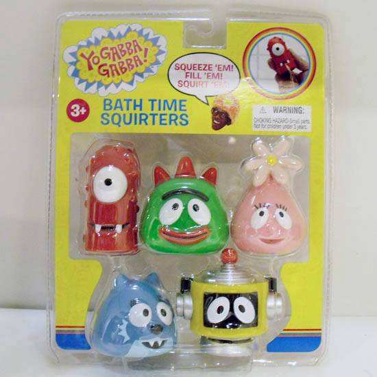 Featured is a set of bath time squirters from the series of "Yo Gabba Gabba". Simply squeeze them to fill water and they can squirt it out. These amusing and flirty squirters can surely provide you with lots of fun in the bath-time.
