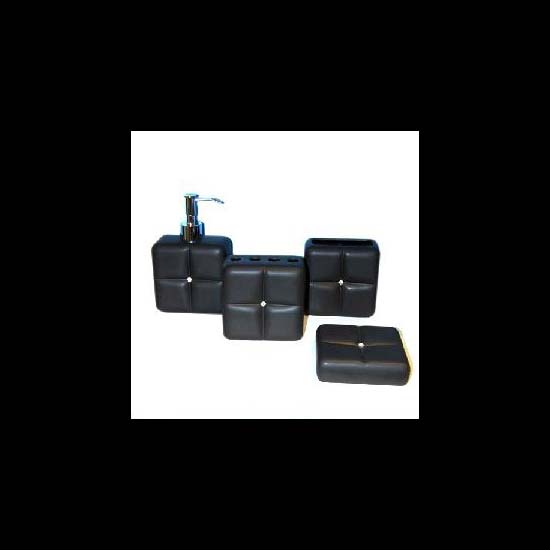 • This bathroom accessories set includes four items including liquid dispenser, brush holder, etc