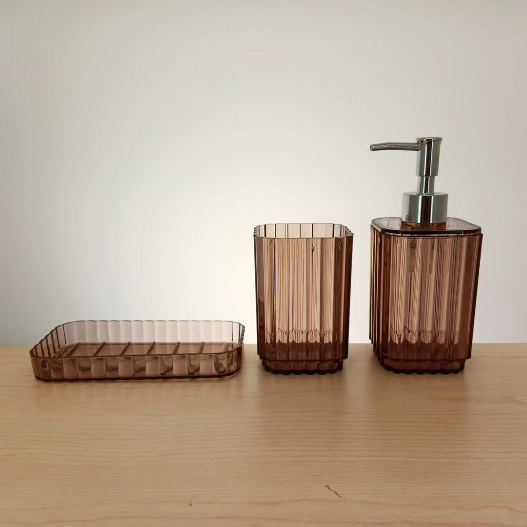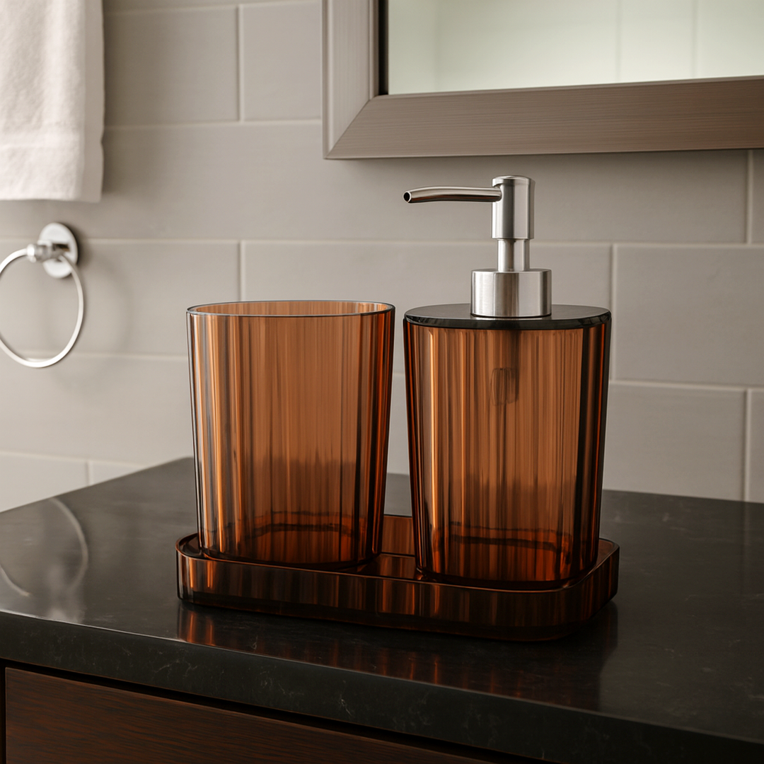 With delicate ribbed texture and warm amber tones, these accessories bring elegance to any bathroom. Designed for both beauty and function, they transform daily routines into moments of ritual. In every detail, they reflect timeless taste and elevate the value of everyday living.