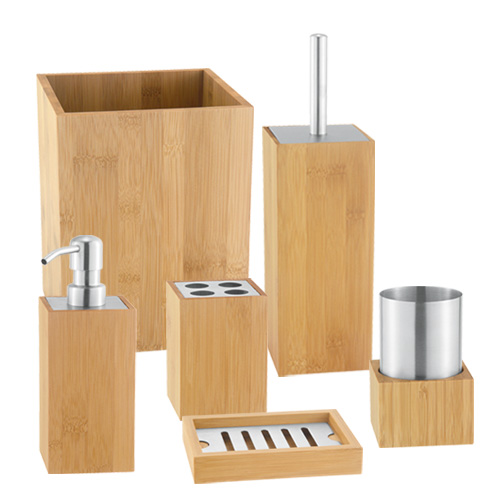 Add natural beauty to your bathroom decoration with this complete set of bath accessories. Set includes waste basket, soap dispenser, toothbrush holder, tumbler,soap dish, toilet brush holder.