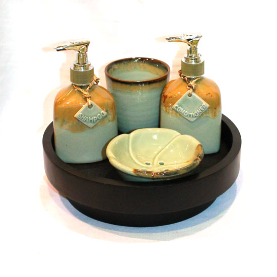 Showcased to you is a set of bathroom accessories that is well made of ceramic material. This set of bathroom accessories comes with a tray, 2 liquid soap dispensers, a tumbler and a soap holder. They are all hand made by experienced craftsmen.