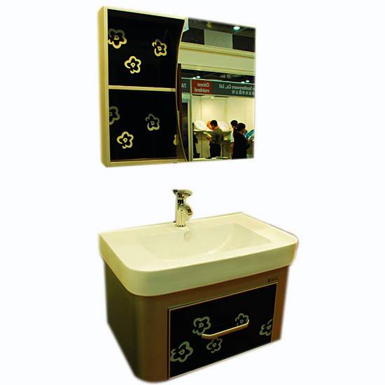 This bathroom cabinet with a basin has a special floral print that is distinctive. This non-angular-shaped bathroom cabinet reduces the possibilities of accidents. This bathroom cabinet is durable and easy to clean.