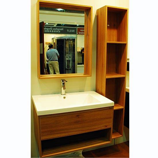 This bathroom cabinet and basin set boasts a simple yet modern style. The marble basin blends with the wooden grains of the cabinet for a stylish appearance. The sturdy construction makes the cabinet and basin perfect for bathrooms.