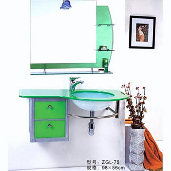 This bathroom cabinet is formed by an individual mirror and a basin attached to a cabinet. The rectangular mirror and the glass basin together show a modern style. This cabinet can easily match different interior designs.