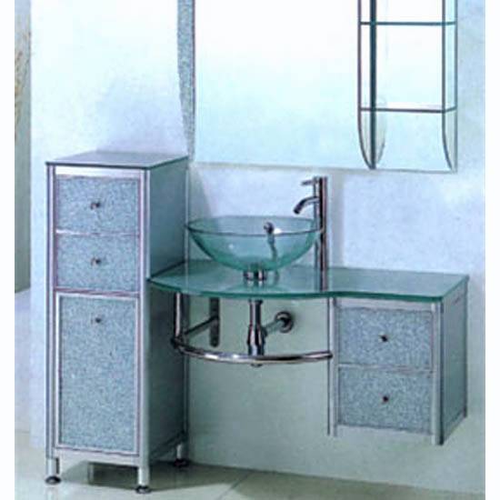 This bathroom cabinet is formed by an individual mirror and a basin attached to cabinet. Multi-drawers allow large storage capacity. The design is simple but modern. This cabinet can easily match different interior designs.