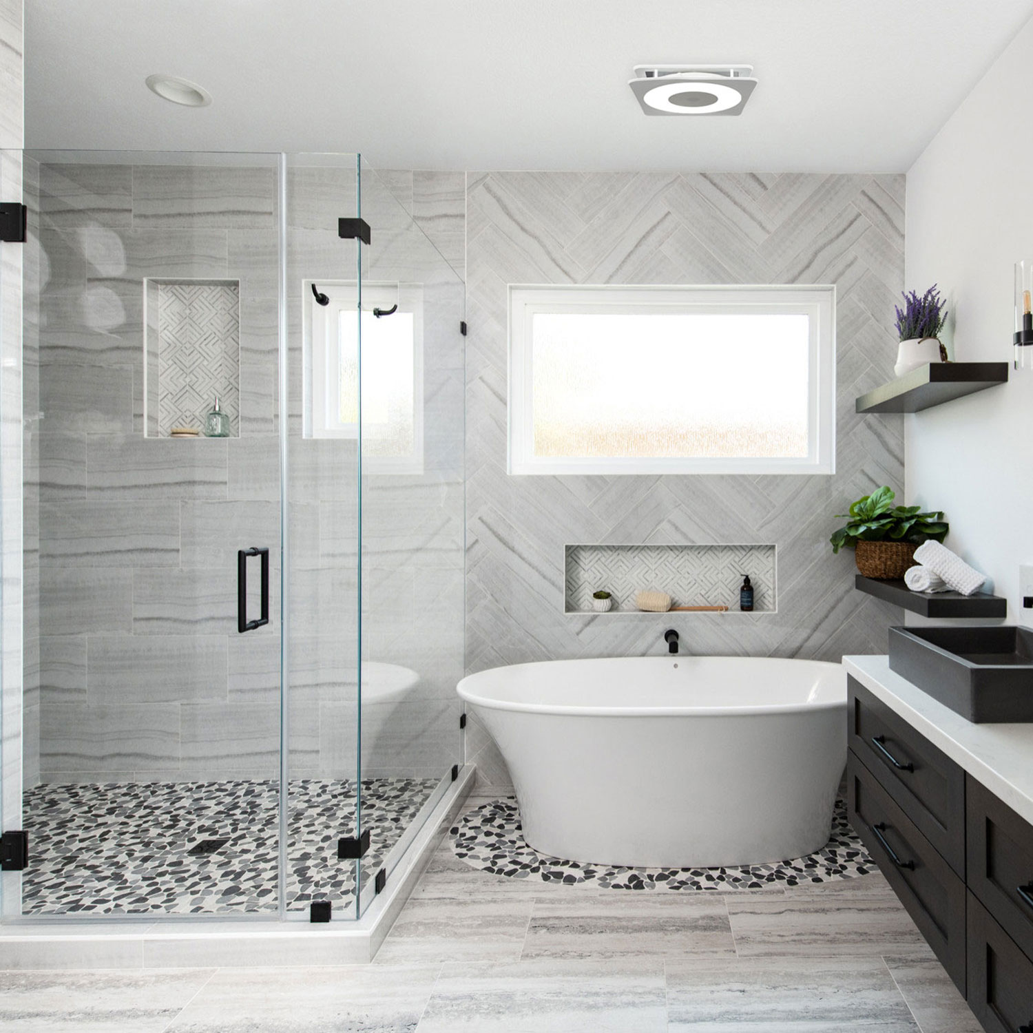 ● Intelligent ventilation, lighting, and bluetooth speaker combined in a single solution.