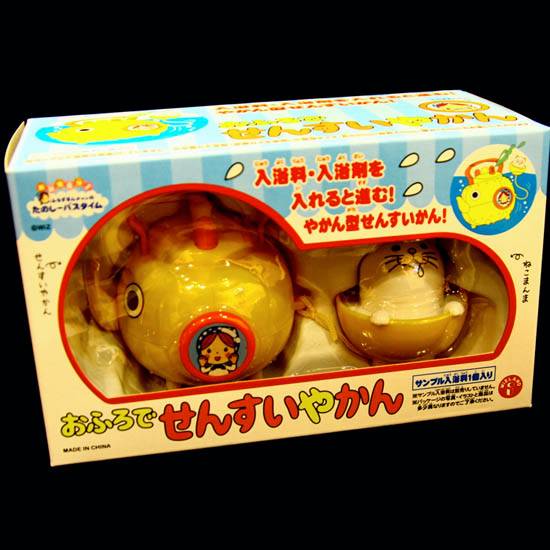 This is a bathtub toy featuring a kettle-shaped ornament and a lovely kitten on a bowl. The two pieces are linked by a string. When a piece of soap is placed in the kettle, the kettle will float on the water. It also features forward moving and self-rotating actions.