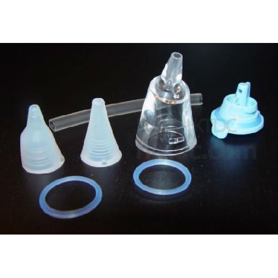 With 2 Sizes of Silicone Tips (Reusable). With 1 Transparent and Easy to Clean Mucus Cap (Reusable).