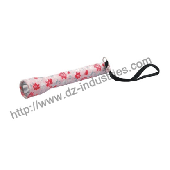 This is a dainty flashlight with a sturdy casing. Accented with allover floral patterns, this outlined flashlight showcases a refined look. A black strap is included for easy holding.
