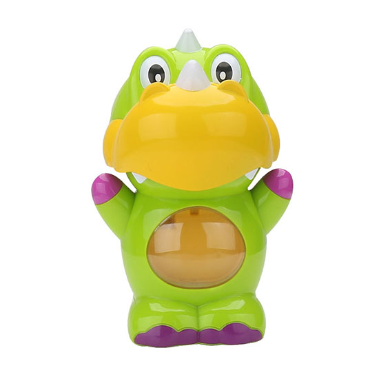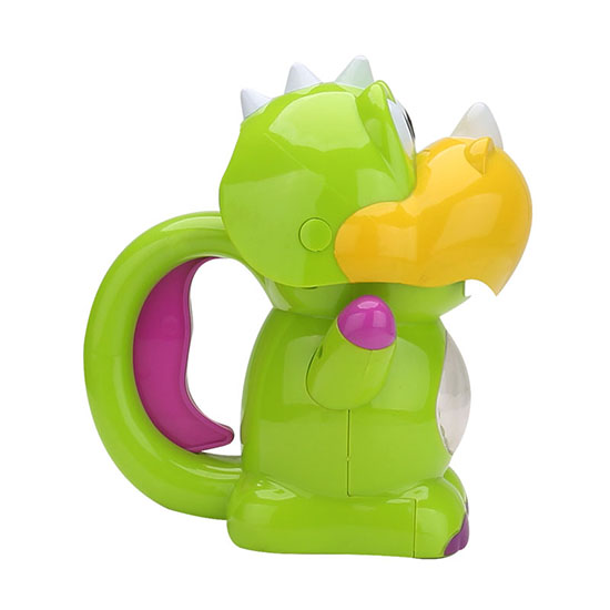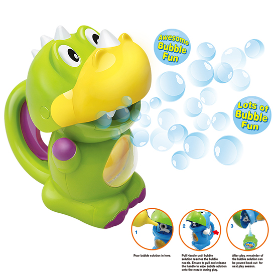 Function: Pour the bubble solution into reservoir,simply hold it on hand, and grip the handles, then it would open the mouth and start blowing bubbles.