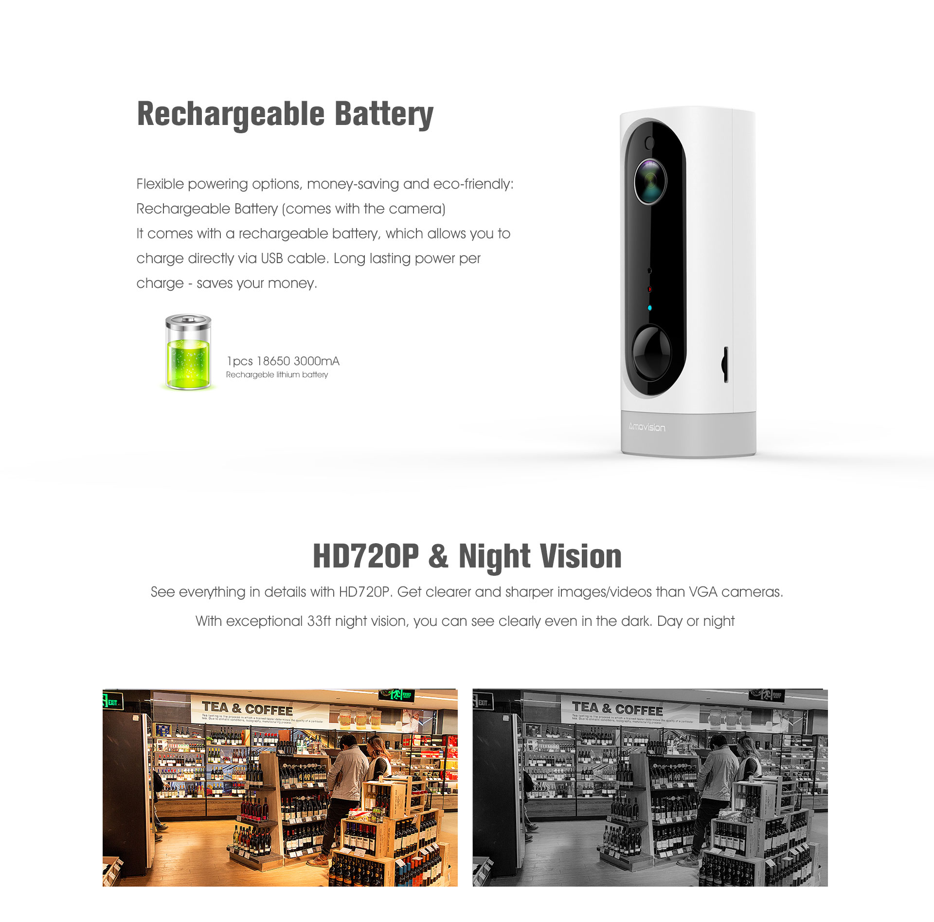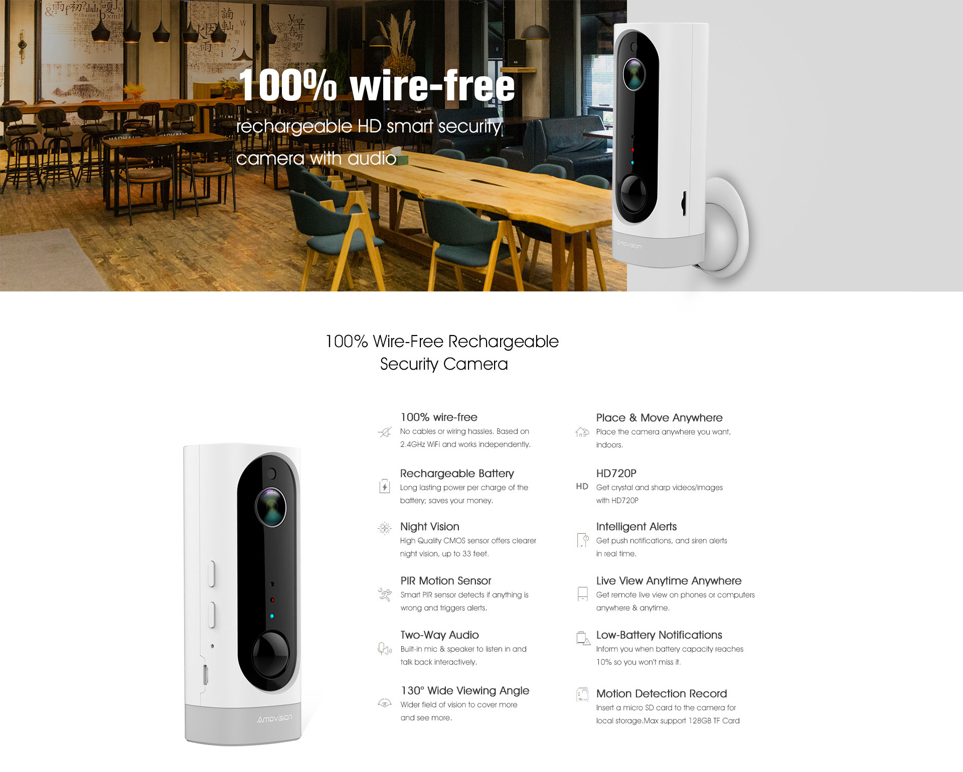 • 100% Wire-Free Rechargeable Security Camera
