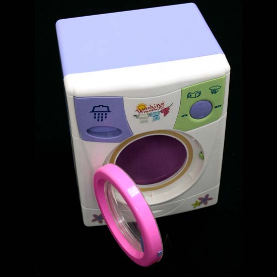The toy washing machine is delicately made with a white-and-purple construction. The sturdy construction guarantees enhanced durability. This toy washing machine educates children on how to do housework.