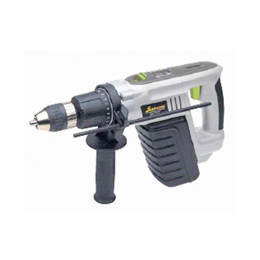 This powerful drill is reliable for completing woodwork, construction and renovation projects. The exercise features dual handles for precise drilling or hammering. It applies to drilling provided with variable speed and torque adjustment.