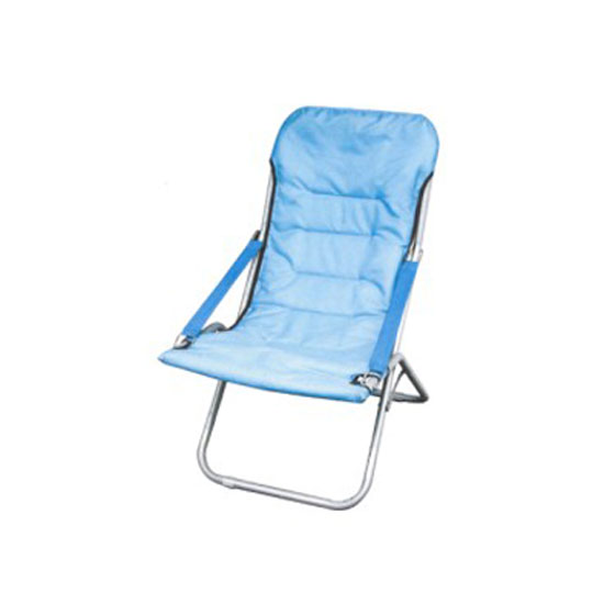 Displayed is a beach chair featuring an all-blue finish. It is sturdily constructed to support and distribute the sitter's weight. It is ideal to use in the swimming pool and at the beach.