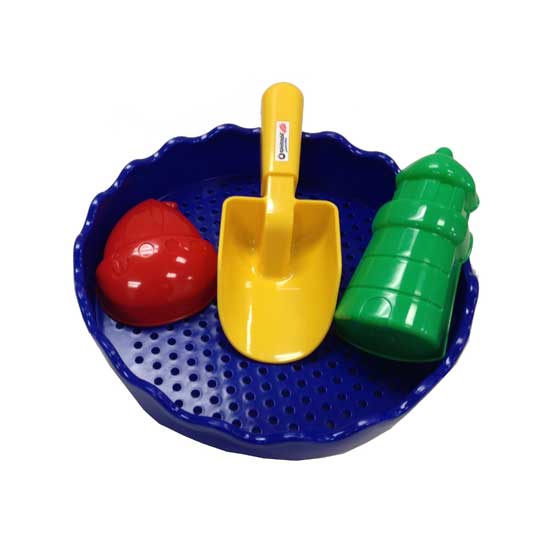 This beach set comes with colorful pieces. Made in Germany, this beach set is PVC-free for safe play. This high quality beach set will make building sand castles easy and fun.