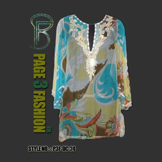 This women's' beachwear top has a V-neckline and butterfly sleeves. The couture style patterns give it a modern chic look. The shell embroidery on the neckline of the garment adds elegance to the wearer. This beach top is ideal for Miami beach.