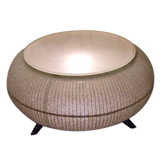 This table is made with beading and also with lights. The round table has a nice appearance which can be a coffee table as well as a decoration in home, cafes and shops. The lights inside the table also creates a special ambiance.