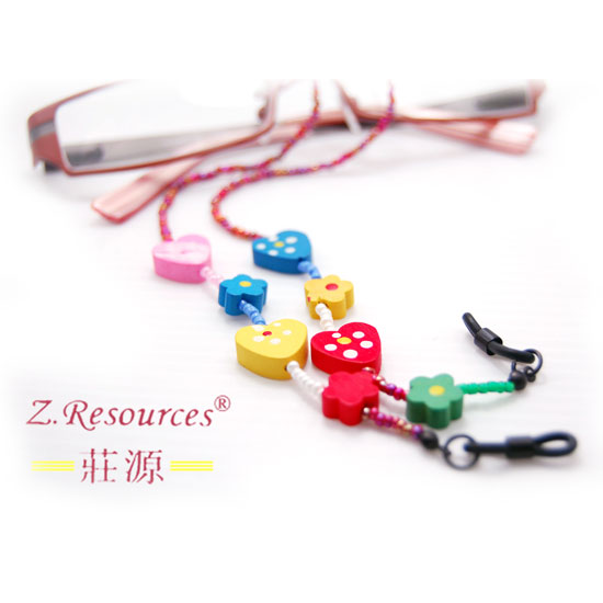 This beaded eyeglasses cord features colorful construction with lovely wooden embellishments. The cord reveals excellent craftsmanship and meticulous attention to the detail. It offers a fashionable and reliable way to secure your glasses.