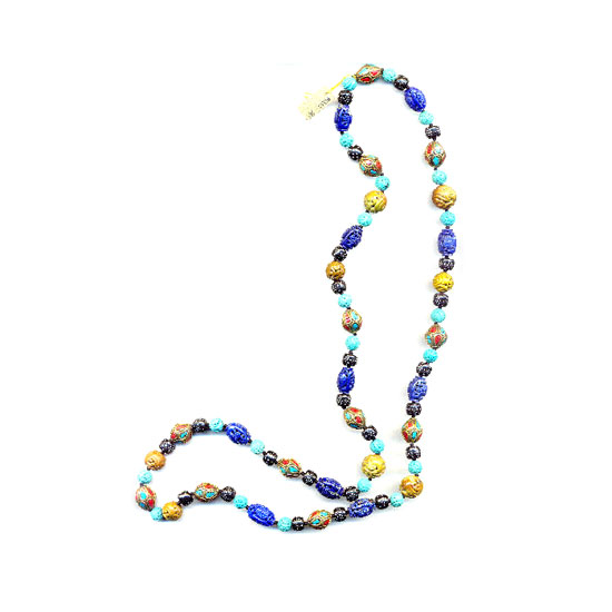 This high-quality necklace comes with a stylish and fashionable design. It is crafted with carved lapis, turquoise and emerald beads for an elegant touch. This beaded necklace is great for complementing your chic look.