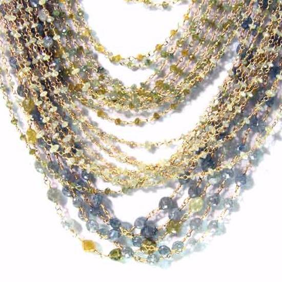 • An exquisite gold chained swag necklace with diamond beads .