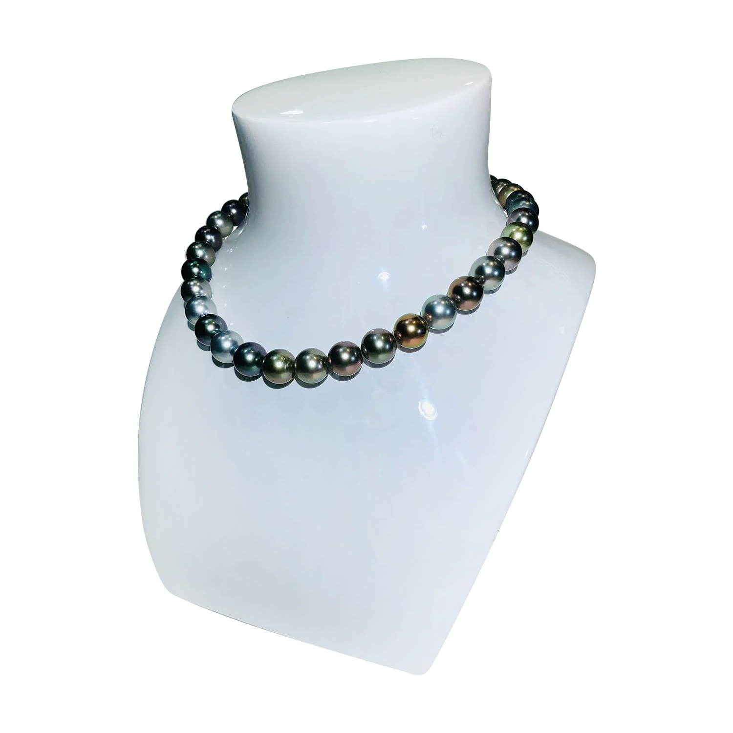 Draw all attention to the perfectly sculpted shoulders and defined collarbones with this lustrous pearl necklace. Constructed with a range of Tahitian pearls in varying hues, this beaded accessory exudes an iridescent and magical sheen that promises to intrigue the guests without screaming for attention. Complete minimalistic cocktail ensembles with this ever-glowing, timeless, and feminine number.