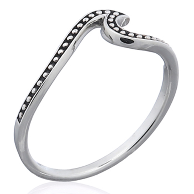 Beaded Wavy Oxidized Silver Ring