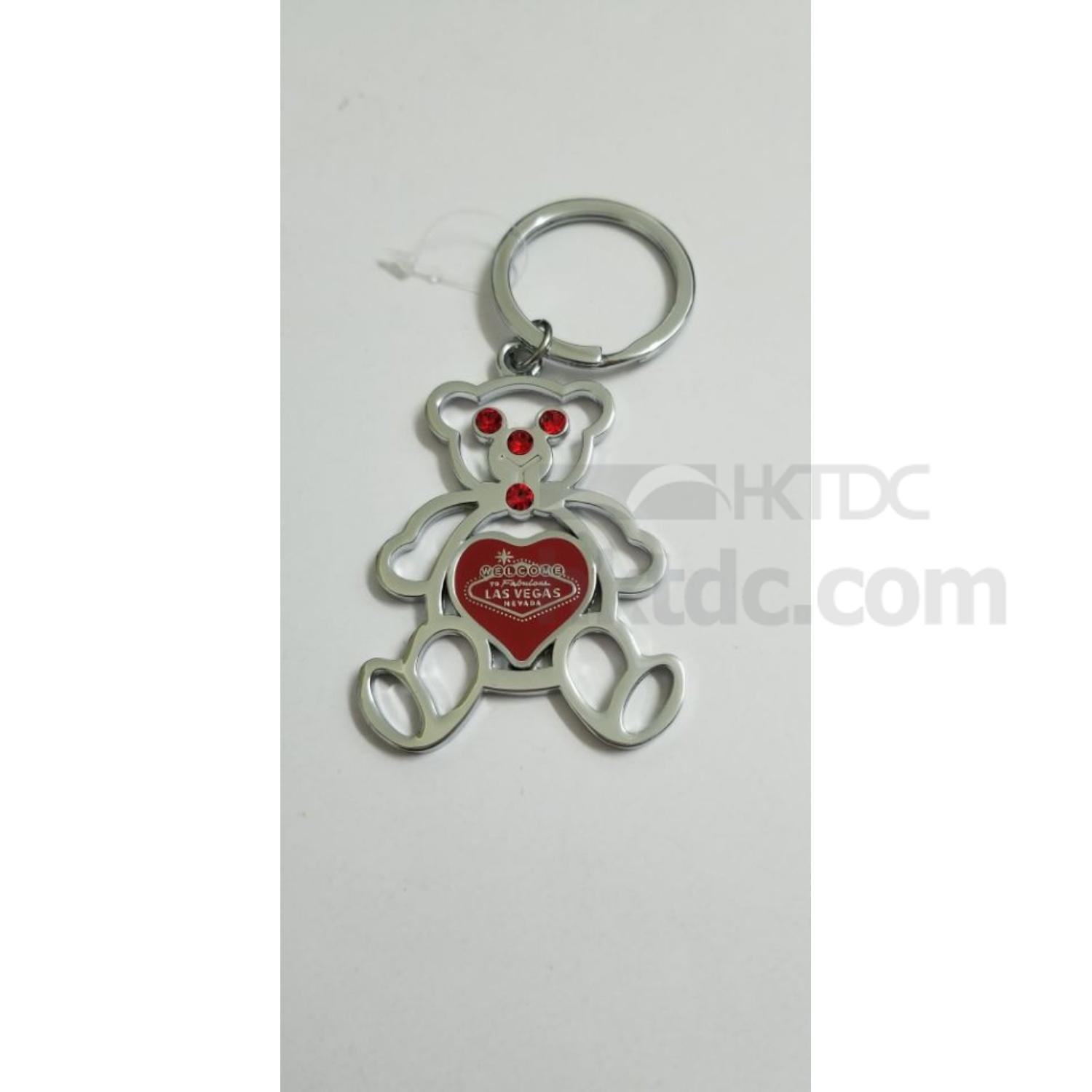 • Die Cut Bear Shape Metal Keychain with Red Crystals