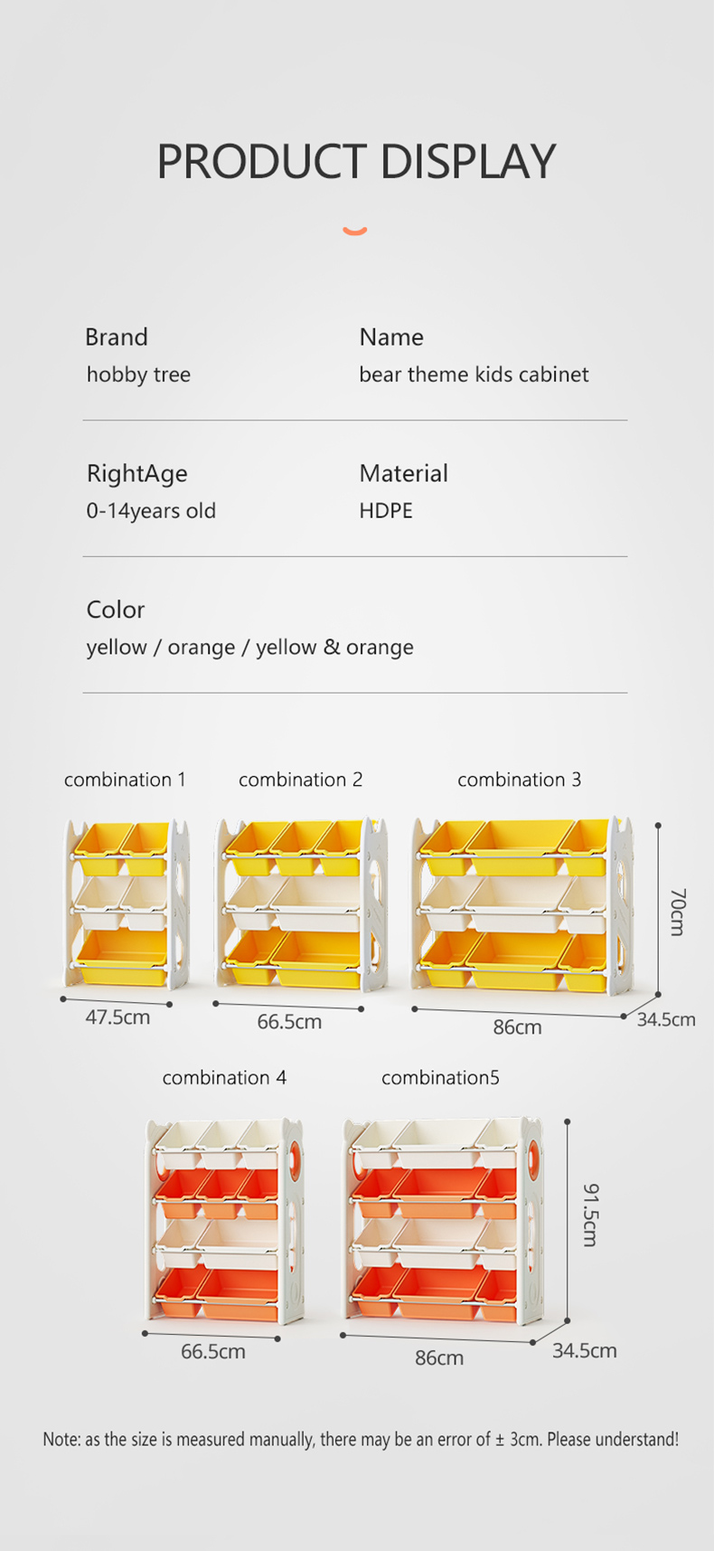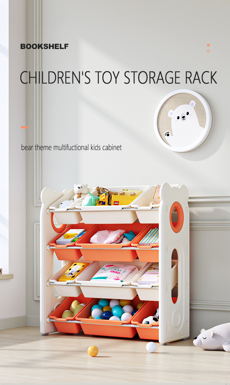 Bear Theme Kids Cabinet Children Storage Cabinet Shelf Plastic Furniture Toys Indoor