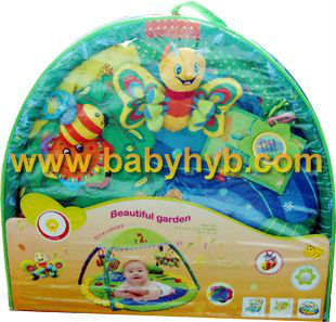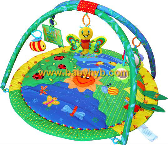 There are some toys hung under the loops of toy bars, such as key teether, it is helpful to baby to bite it growing teeth well, round rattle can help baby to practice hear-power, abacus can help baby know colors, consumer can freely hang their preferred toys by the loops.