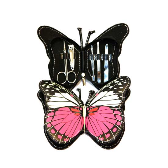 This 5-piece beauty tool set includes different manicure tools such as a nail clipper, a nail file, scissors, tweezers, etc. The stainless steel construction ensures reliable performance and first-rate durability. This butterfly style design makes it an attractive choice for you.