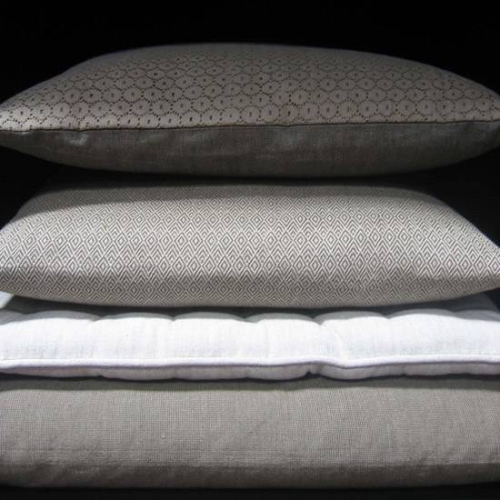The featured item is a set of bed linen, including bedspread and pillow cases. The bed linen comes in two patterned design, one of circular hive pattern while the other is of packed rhombus patterns.