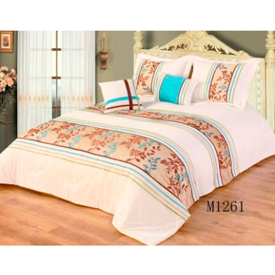 Featured is a set of bedding items designed for couples. The set includes a quilt cover, two pillow cases and two cushion covers. The delicate patterns on the plain, warm colors bring a stylish touch to your bedrooms.