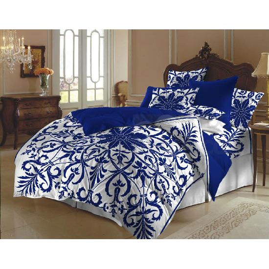 Introduced is the bed linen set comprising a quilt cover, pillow cases and cushion coverswith a meticulous finish. It incorporates cotton voile base fabric with cotton filling to render a gratifying comfy feeling. This dainty bed linen set is styled with a reversible layout, featuring white and blue colored designs on two sides respectively. The white side is adorned with tribal floral patterns in blue, suggesting a harmonious look.