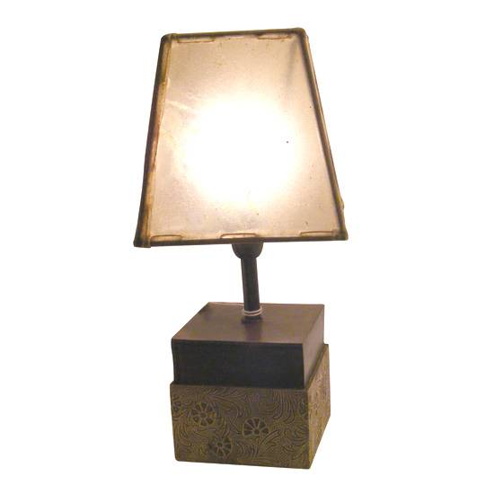 This is a bedside lamp with a touch of oriental style. The lamp has a trapezium shaped shade in white, which allows soft and mild light to emit through it. The wooden and metal base gives it a natural feeling. The lamp gives people a modern and stylish feeling. Featuring with a touch of vintage, makes it more adorable.