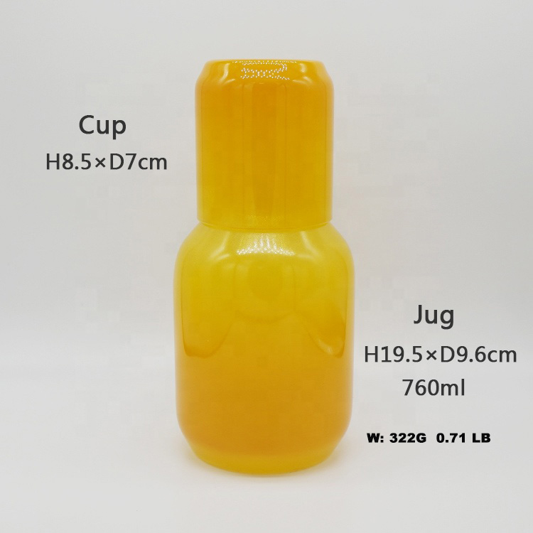 760ml Large capacity glass carafe and cup set : The Carafe is 870ML/29 oz. Cup 7oz. Height: Carafe 19.5cm ,Cup 8.5cm.