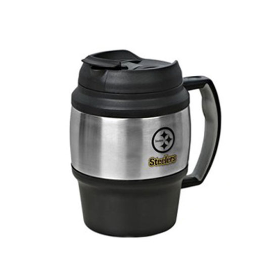 This beer mug comes with an ergonomic handle and a cover. The combination of matte black and silvery finishes is unique and chic. This awesome mug is ideal for everyday use.