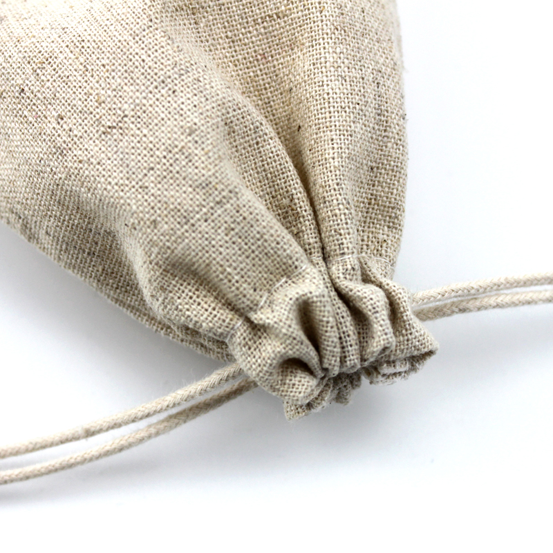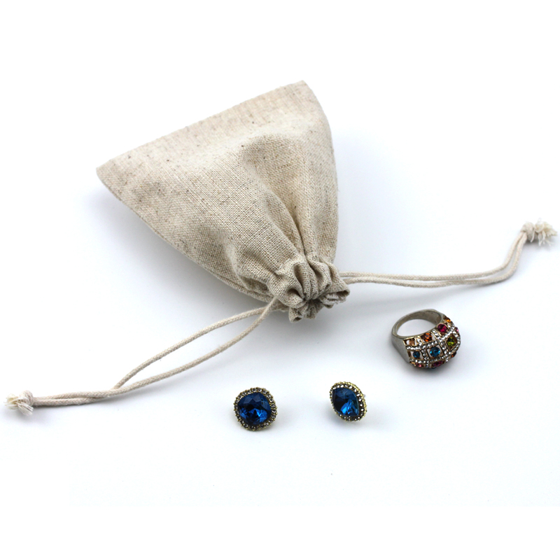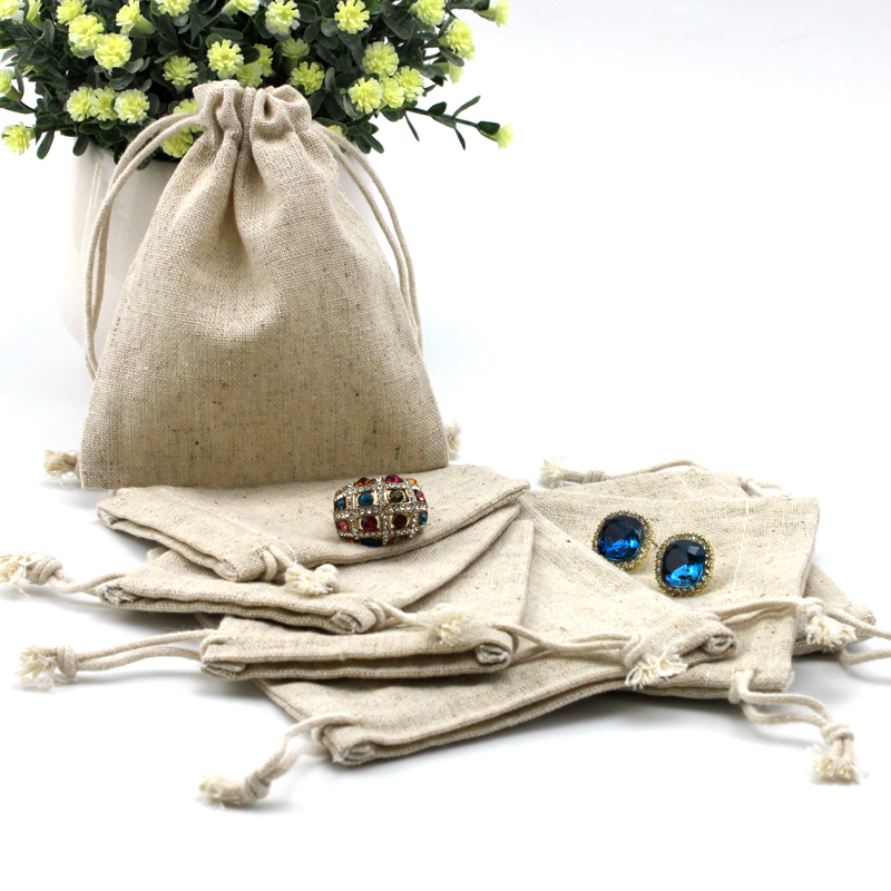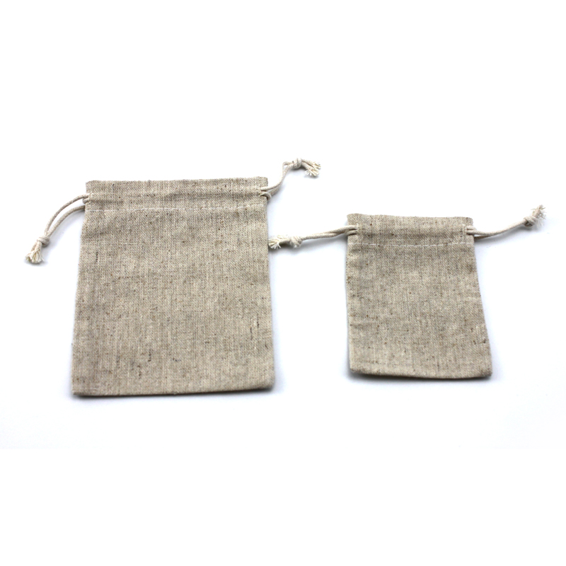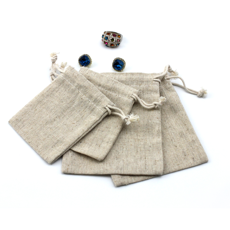 Beige Flax Bag Drawstring Pouch Custom Small Jewelry Packaging Pouch for Gift Storage