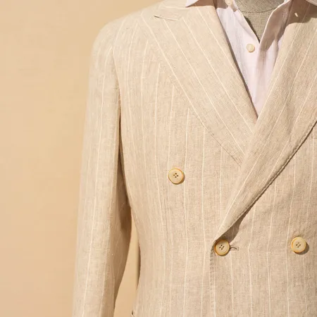 This double-breasted blazer effortlessly complements any outfit. With its unlined design and tailored fit, it is versatile and suitable for a range of styles and occasions.