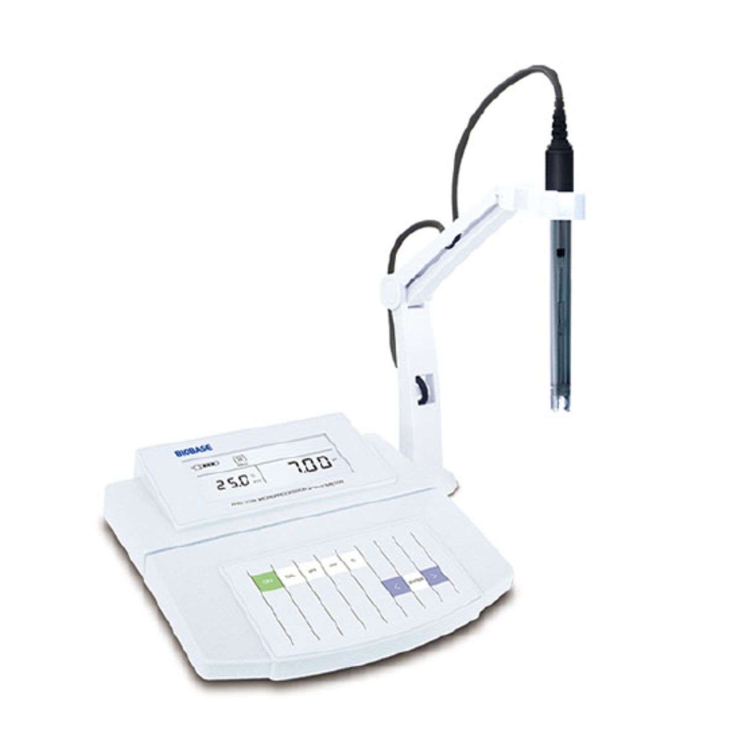 *Economical benchtop pH meter is equipped with a white backlit LCD display.
