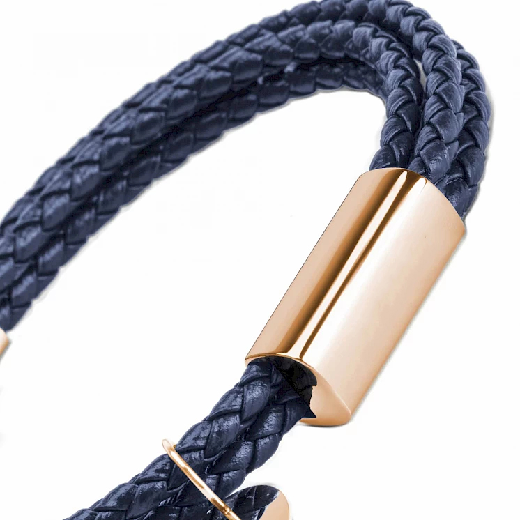 Best Customizable Fashion Logo Personalized Rose Gold Charm Adjust Navy Blue Leather Bracelet