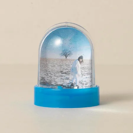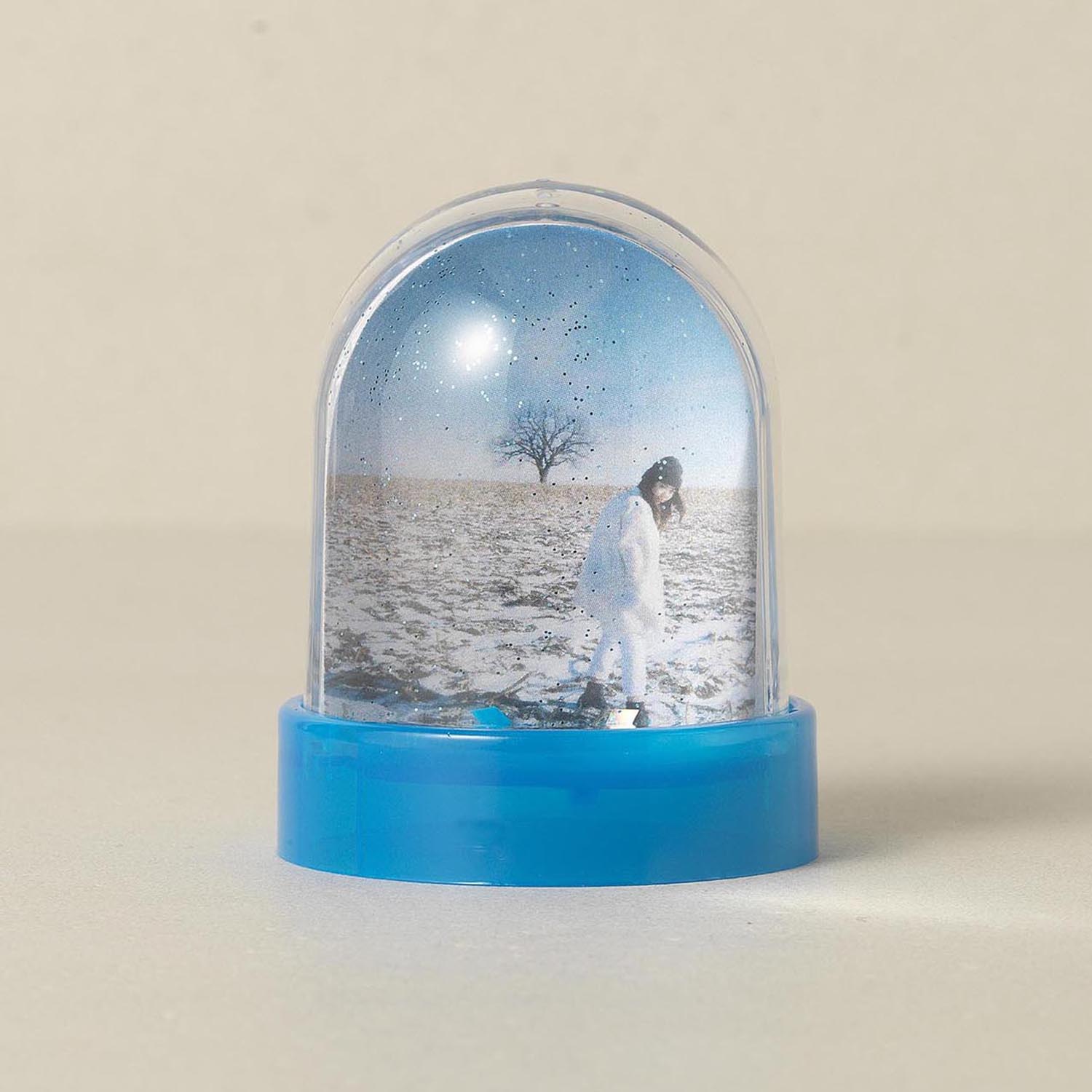 Petite photo water globe that is perfect for displaying your favorite photo. Rounded water globe that fits two petite photos, filled with water and shimmering glitter inside.