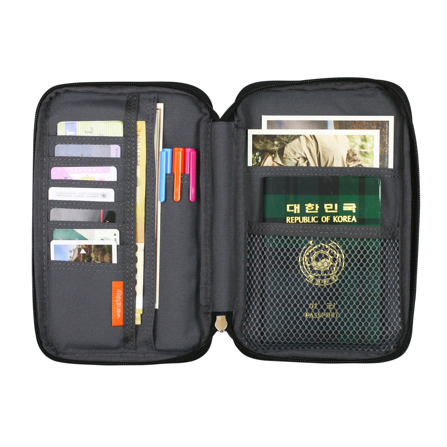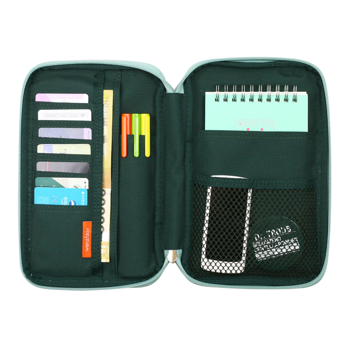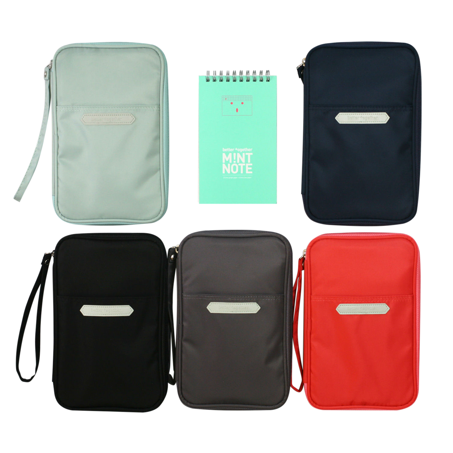 SOLID WALLET is a compact smart pouch that can store your necessaries such as cards, cash, passports, personal belongings, notes as well as writing tools.