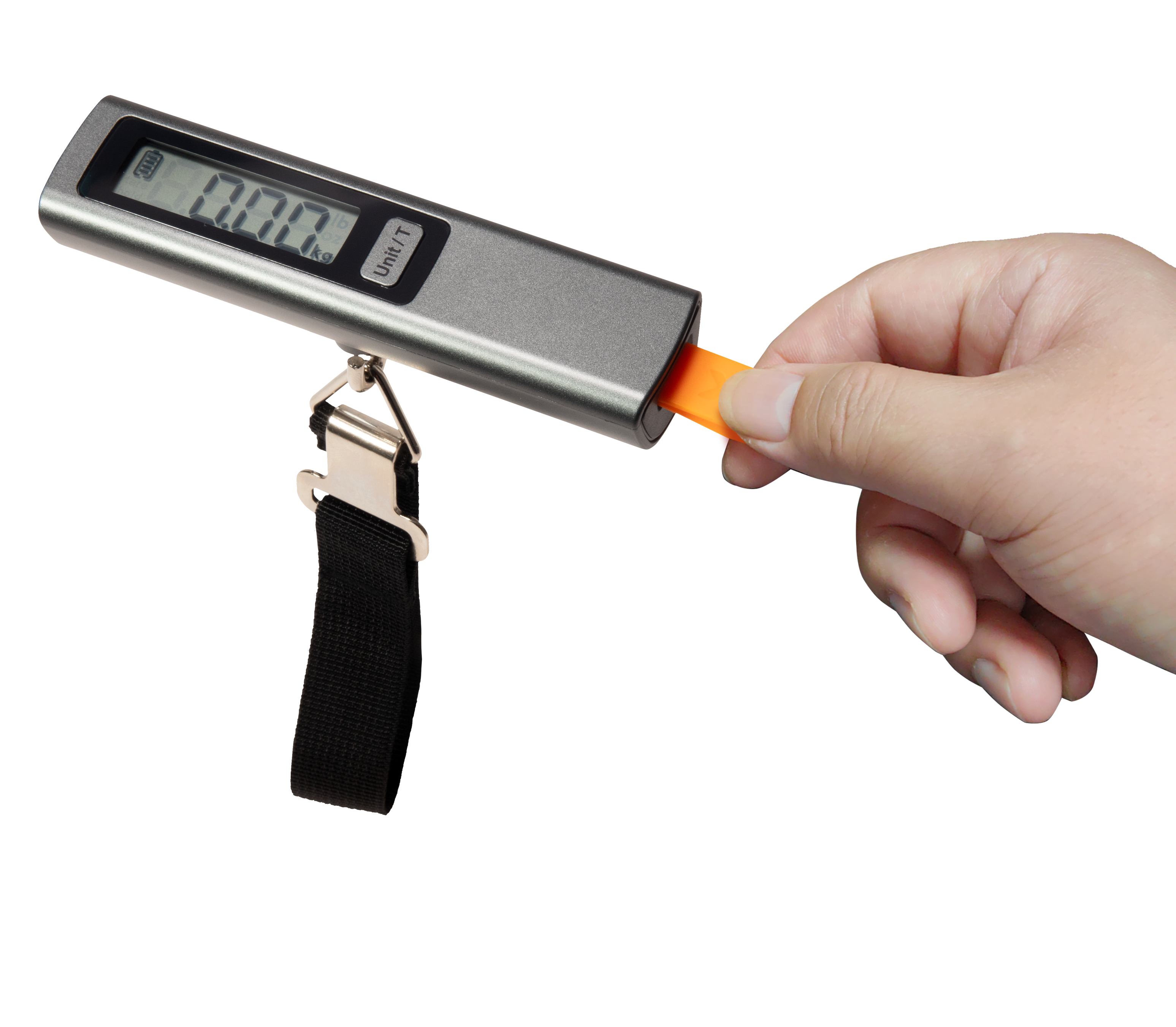 This hanging baggage scale easily prevents overweight baggage charges; a must-have for traveling.