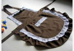Demonstrated is a classy bib apron in bright colored appearance.