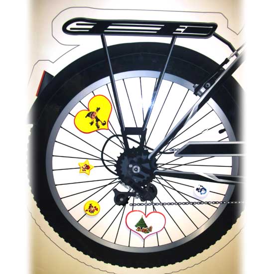 These are attractive stickers on the bicycle spokes. These bicycle spoke stickers come with colorful prints and are crafted in different shapes. These interesting stickers with lighting effects will add a touch of fun to your bicycle.