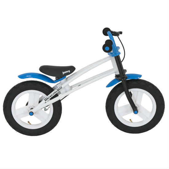 The Joovy Bicycoo is a durable, well designed balance bike for kids 3 years and above. The frame is made of aluminum so it is strong and lightweight just like high-end bikes. The lightweight frame makes controlling the bike much easier for kids, unlike the heavy wooden and steel versions. The tires are pneumatic (air) and refillable. Many balance bikes on the market use EVA plastic tires which are cheaper and wear out much quicker than the rubber tires used on the Joovy Bicycoo. The suspension qualities of pneumatic tires give kids a smoother ride. There is also a hand brake for the rear tire. The seat is adjustable and features 12 inch tires.