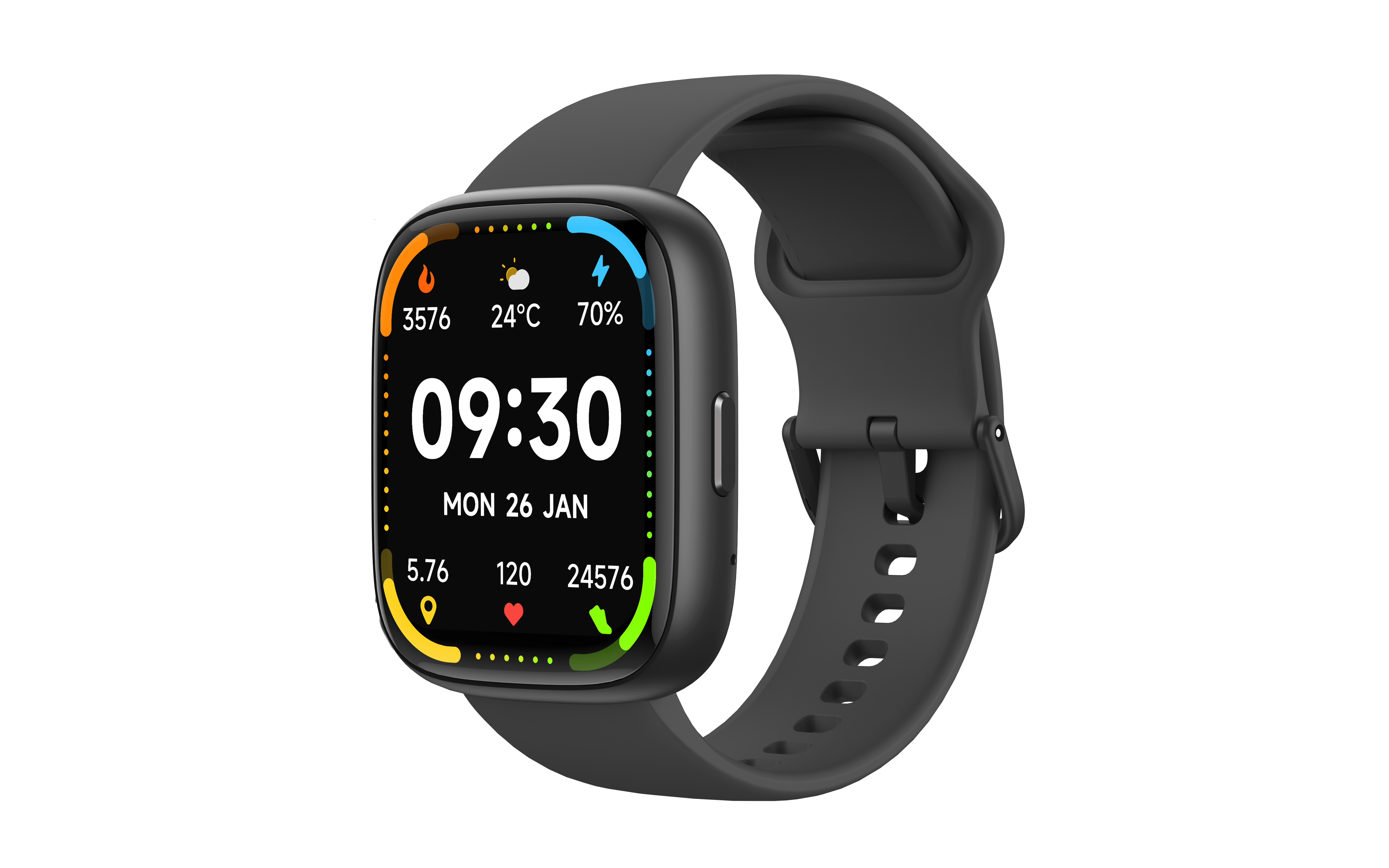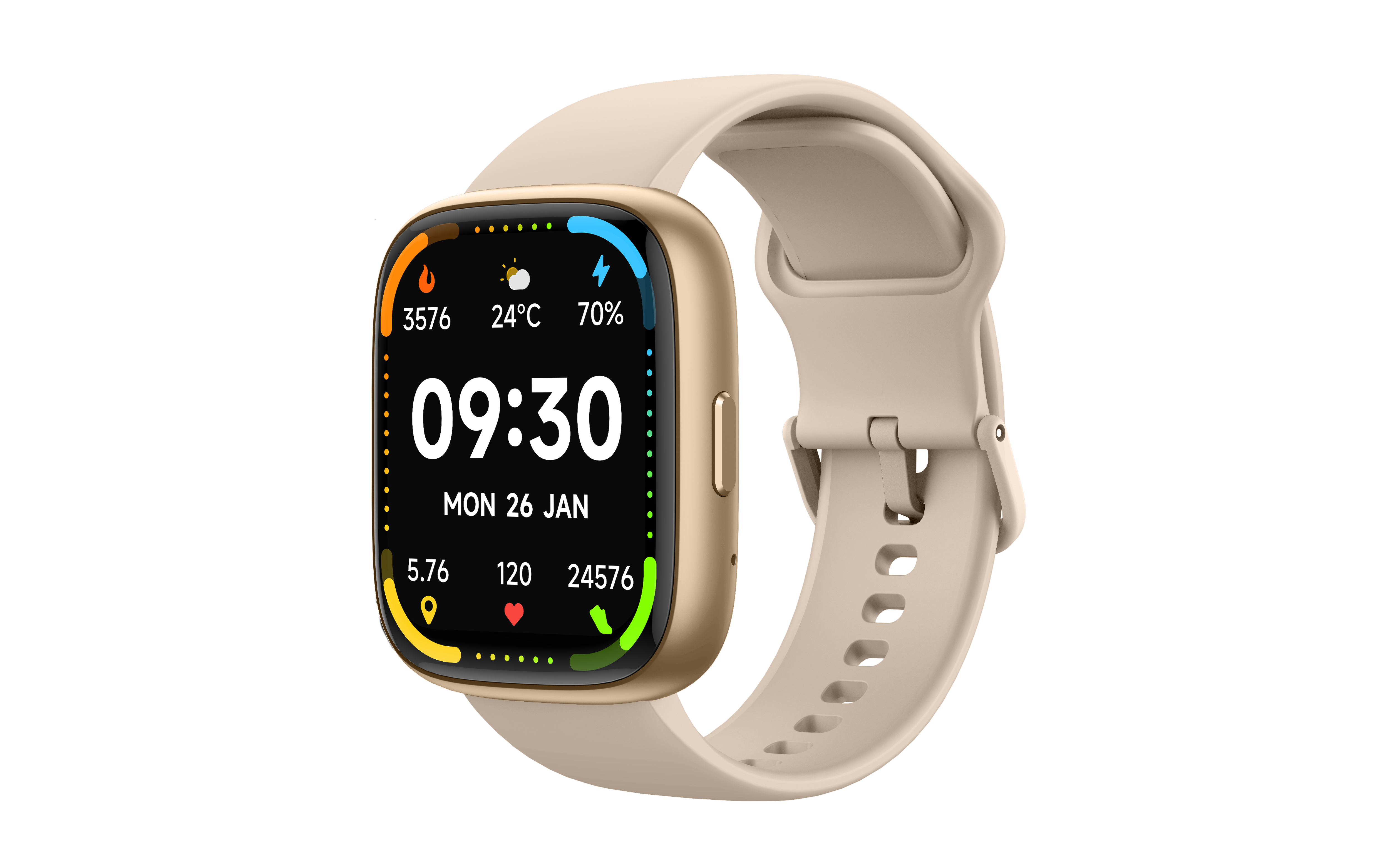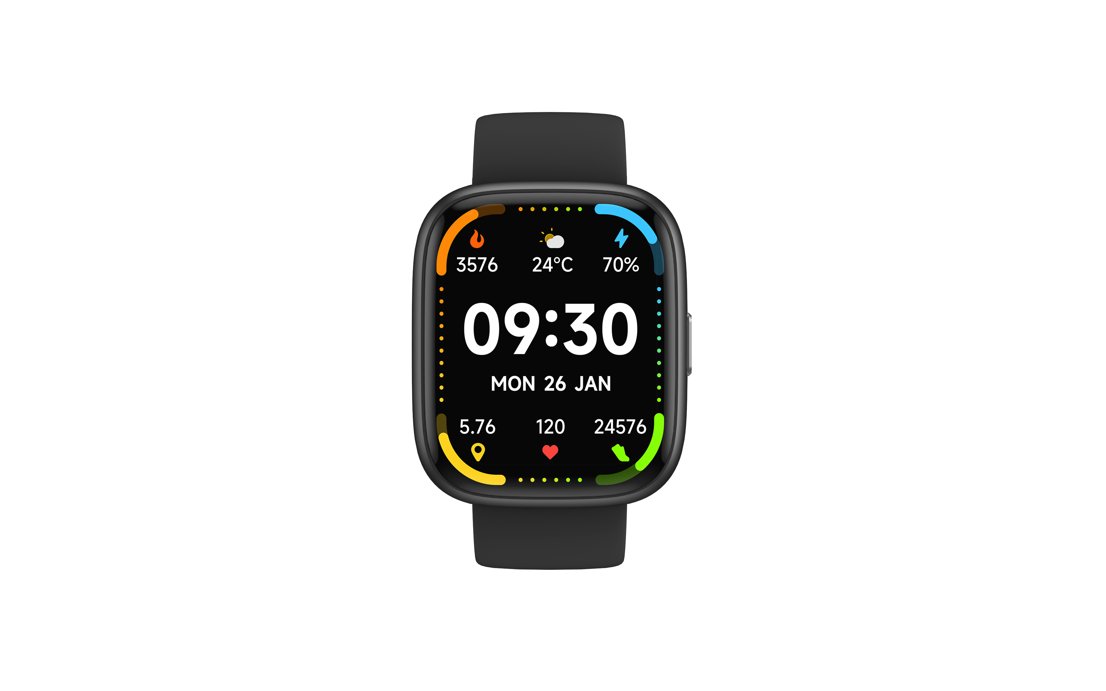 Highlights&Selling points | bluetooh calling, Al Voice 100 cloud dials, 3 built-in dials (3 cloud dials + 1 wallpaper dial) 100 sports modes, 20 built-in sports modes, 4 self-sports recognition, intelligent running Continuous heart rate, blood oxygen, pressure, sleep monitoring, calories, steps, distance throughout the day Reminders (incoming calls, messages, alarm clock, drinking water, health, power, goal achievement, women's health) Weather forecast, find phone, music control, alarm clock, timer, stopwatch, flashlight, women's health tracking 7 days of battery life, 5 days of BT battery life |