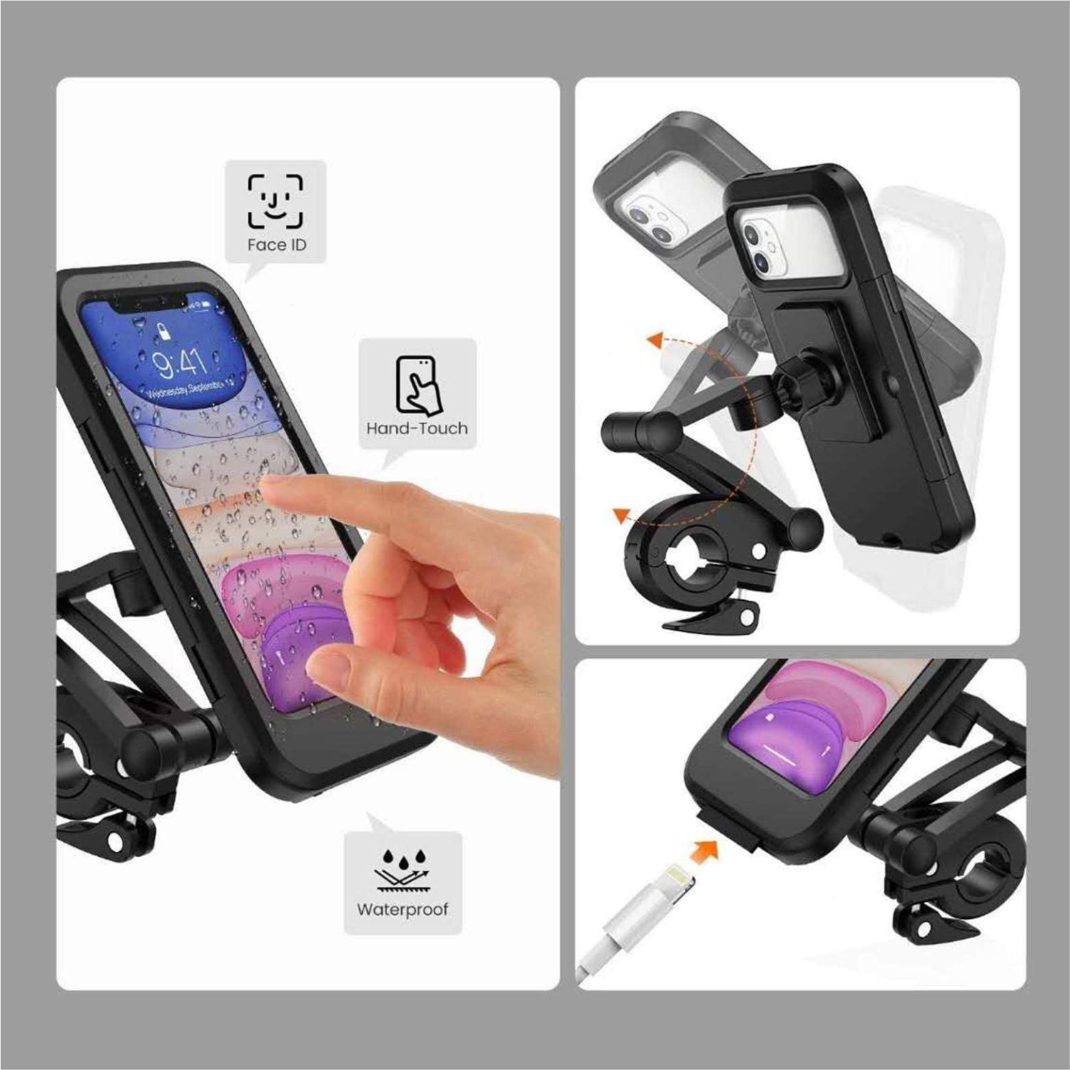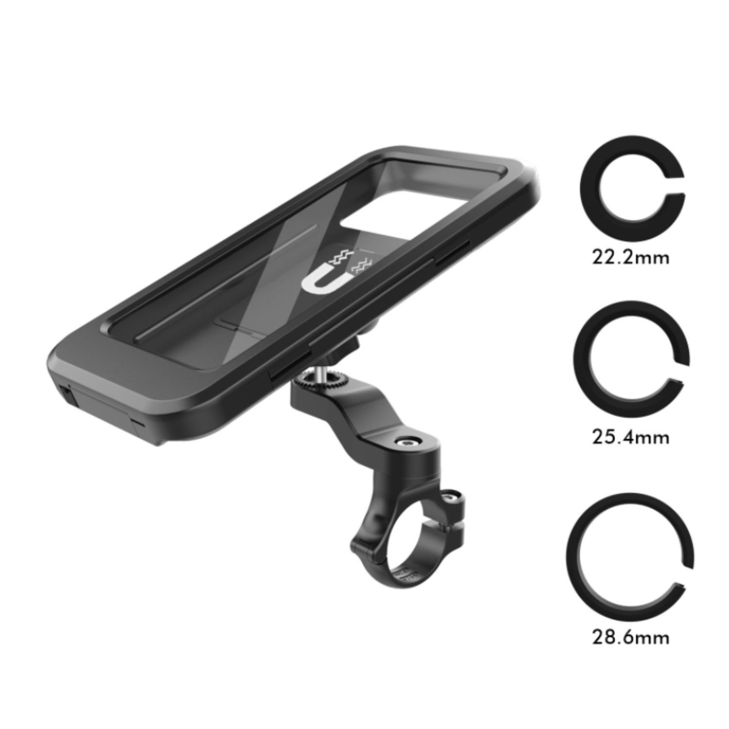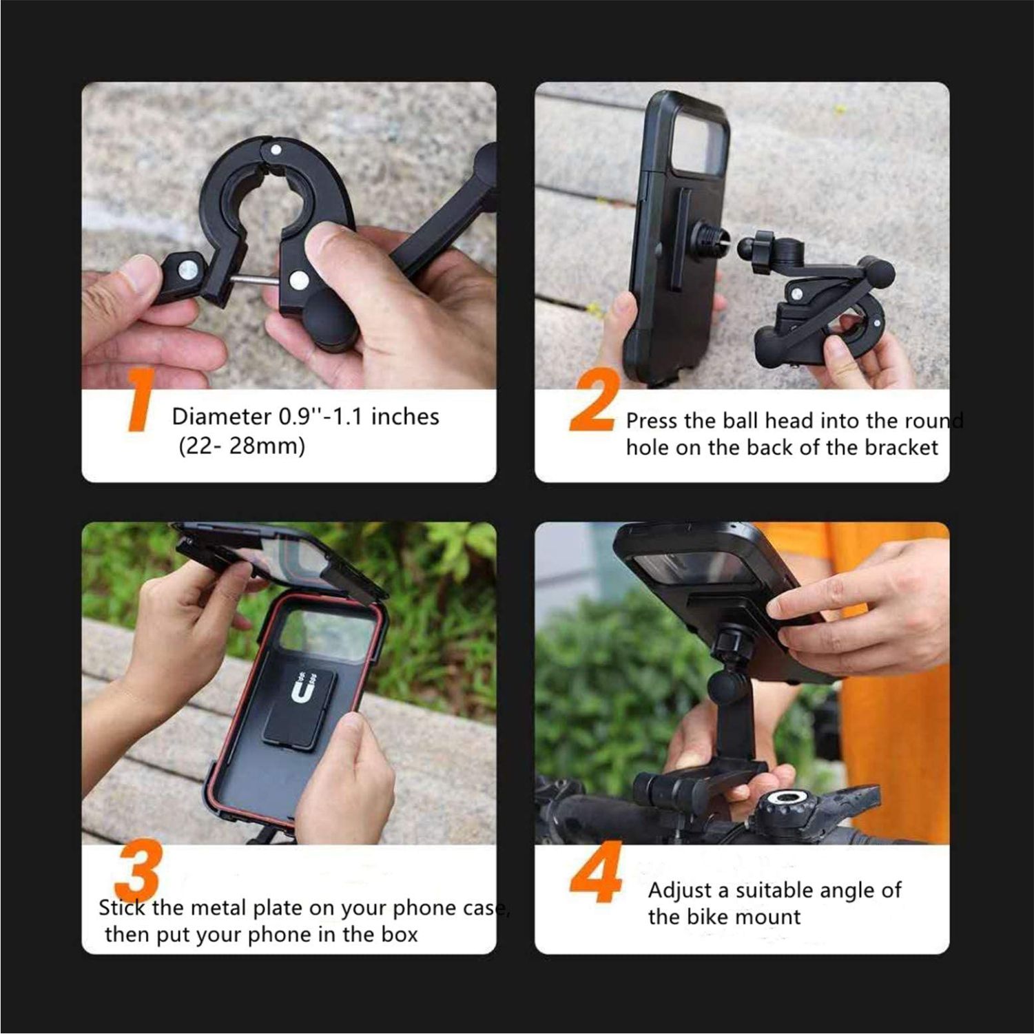 Waterproof & Shock Resistant Phone Case : This bike phone mount designed with built-in magnetic, the case is fully closed. It can protect your phone from rain, snow, sand and dust. will keep your phone stay in place and in safe, even on the rugged road.