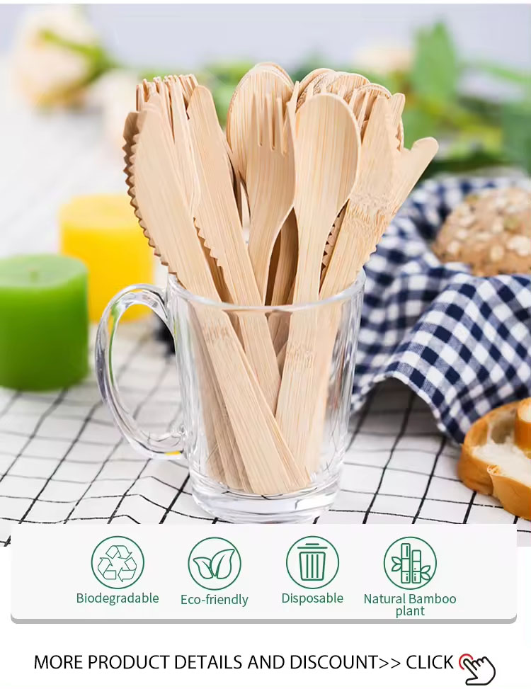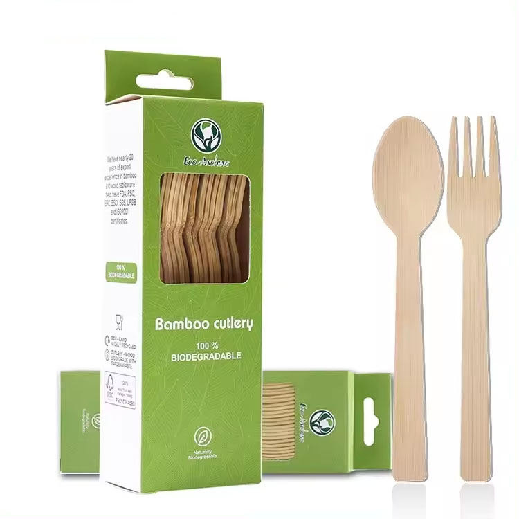 Biodegradable Disposable Eco Friendly Bamboo Cutlery Set Bamboo Spoon Fork