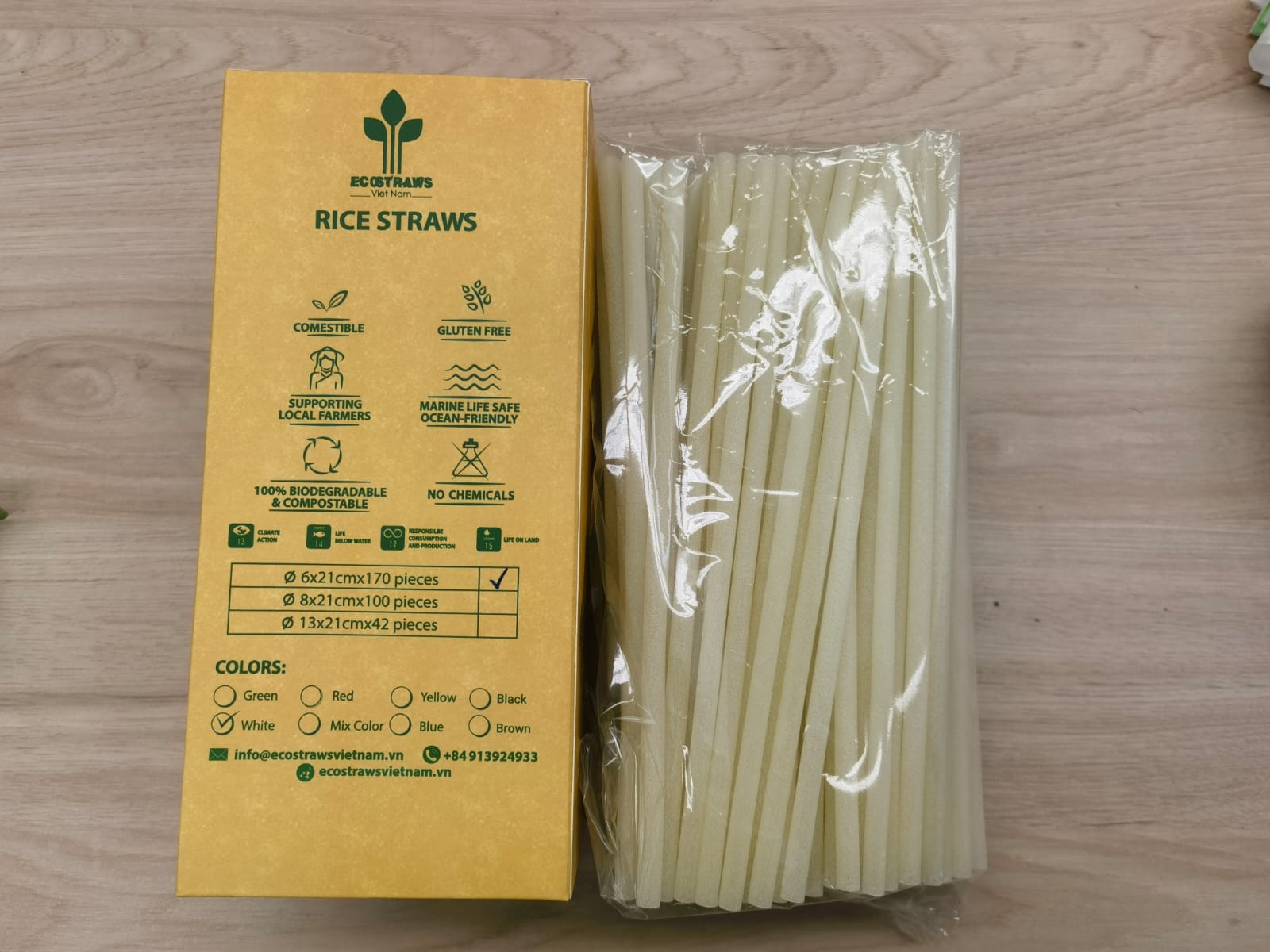 Eco-friendly biodegradable rice straws are affordable, long-lasting, and leave no waste to future generations. It is also edible and made of 100% natural ingredients(Tapioca starch and broken rice flour)